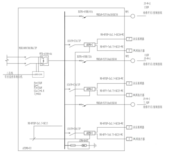 4)余壓深測器通過N-IYSP-2x2.5m2-SC20-C,沿樓板垂直敷設至風間操控箱。