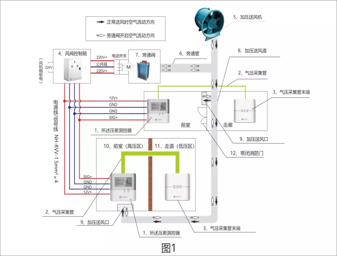 余壓監(jiān)控系統(tǒng)的整個(gè)意圖就是保持樓梯間和前室的余壓值維持在國(guó)家標(biāo)準(zhǔn)范圍,阻撓有害煙氣進(jìn)入的一起,保證防火門的正常敞開(kāi),保證生命通道的疏通。